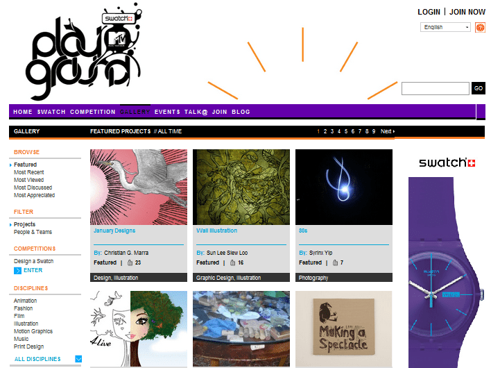 So how do brands leverage this platform? Behance has a product called Custom Creative Networks which means a brand can utilize the existing technology framework and swap in their logo and unique branding elements. The major benefit of building a social network of designers around a brand is that it creates a community of people who associate themselves with the brand and can be tapped into for insights. One prominent example is SwatchMTV Playground, a partnership with Swatch the watch brand and MTV, the popular music channel, implemented a Custom Creative Network. They used the platform to build a community of strong creative designers and reach out to them to participate in competitions like creating the next Swatch watch design.