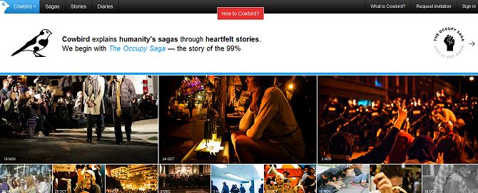 There are different levels of storytelling on Cowbird. A ‘saga’, is a collection of stories grouped into a theme like Occupy demonstrations around the world. A ‘story’, is a person’s account of anything they want to say, like a poem about climbing an icy mountain. A ‘diary’ is a collection of stories from one person. It’s a little like a blog, but collating everyone’s blog in one place. Authors can add images, videos, interactive audio stories and character bio’s.