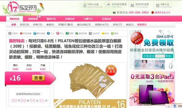 17mh.com Raising US$5M: Flash sales service 17mh.com (that is really a weird domain name, btw) raised US$ 5 million, the first ever in group buying sector in this year. The site is focusing on female cosmetics with a mix model of group buying and flash sales.