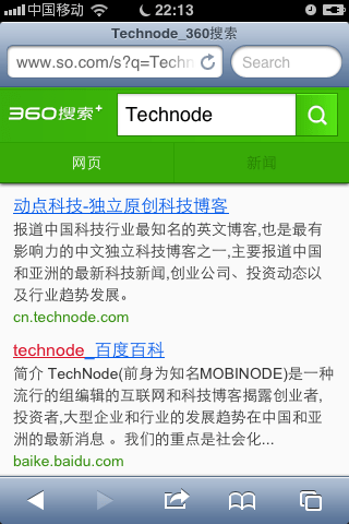 360 mobile search went online recently at m.so.com, though it’s still in the ‘primitive state’ with functions limited to web search and news search. One 360 staff posted messages on Weibo disclosing that they were hard working on functions like mobile map and so on, but there’s no exact timetable for the launch date yet. Make sense, just like Rome, map also couldn’t be built in a day.