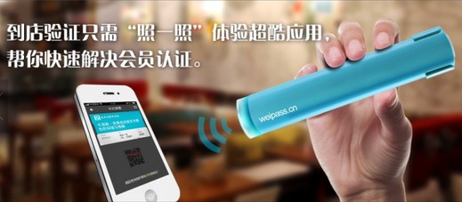 WeiPass offers stone-and-mortar stores a gadget, an electronic seal, and a software platform. Scanning QR codes in the WeiPass app in a user’ smartphone with the gadget, businesses can register a customer or redeem e-coupons stored in the app. The software platform includes customer data and CRM software. For users they need to download a WeiPass app and receive e-coupons or other services through it.