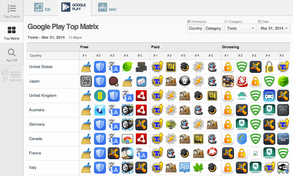 Still, iOS commands higher revenue than Android, as people using the open source platform tend to spend less money. Games are the main driver of revenue growth on both platforms and games are the most popular apps on iOS. The most popular apps on Android, however, are productivity apps like Titanium Backup Pro, Google Translate and the Lookout Security & Antivirus.