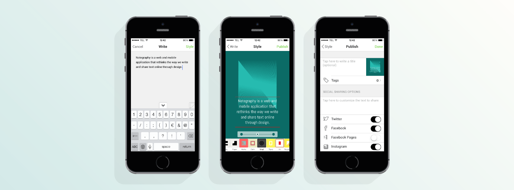 Like Instagram, which allows you to apply filters to photographs before sharing them, Notegraphy allows users to dress up their text via a series of beautifully designed templates before sharing them on Notegraphy or social networks such as Facebook, Twitter, Pinterest or Tumblr.