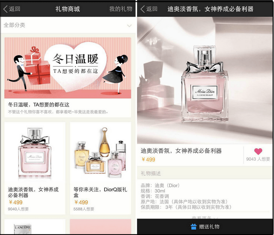 Not only can you purchase your Momo friends gifts, you can also ask them to pay for gifts you like. Alipay, is supporting the payments. All gifts are provided by third-party merchants with categories ranging from electronics products, cosmetics & fragrances and flowers to accessories.